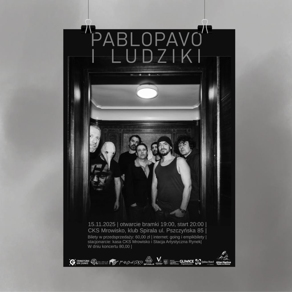 BĄDŹ NA BIEŻĄCO! – Zobacz wydarzenie. PABLOPAVO I LUDZIKI w Gliwicach15.11.2025, CKS Mrowisko, klub Spirala, otwarcie bramki 19:00, start 20:00.Bilety w przedsprzedaży 60,00 zł. Internet: GOING EMPIK Stacjomarnie: Stacja Artystyczna Rynek, Rynek 4-5 ( w godzinach pracy i podczas wydarzeń). Kasa CKS Mrowisko ul. Pszczyńska 85 ( w godzinach pracy i podczas wydarzeń). Salony EMPiK. […]